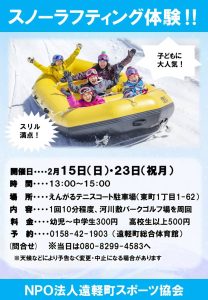 スリルと迫力満点のスノーラフティング今年も開催いたします!